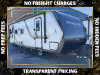 The gel-coated fiberglass exterior and one-piece roof membrane form the base that holds all of the many features, like the three-burner range with an oven, residential walk-in shower, high capacity furnace, and LED HDTV. The friction-hinge entry door won't fly away when you open it, and the residential countertops will let you set down dinner plates. There is a large panoramic window and LED lighting to keep your trailer feeling open, and the four packages included will provide even more features you won't want to camp without. Some of these features include a 200W solar panel, an accessory hitch, and a full width pass-thru storage!