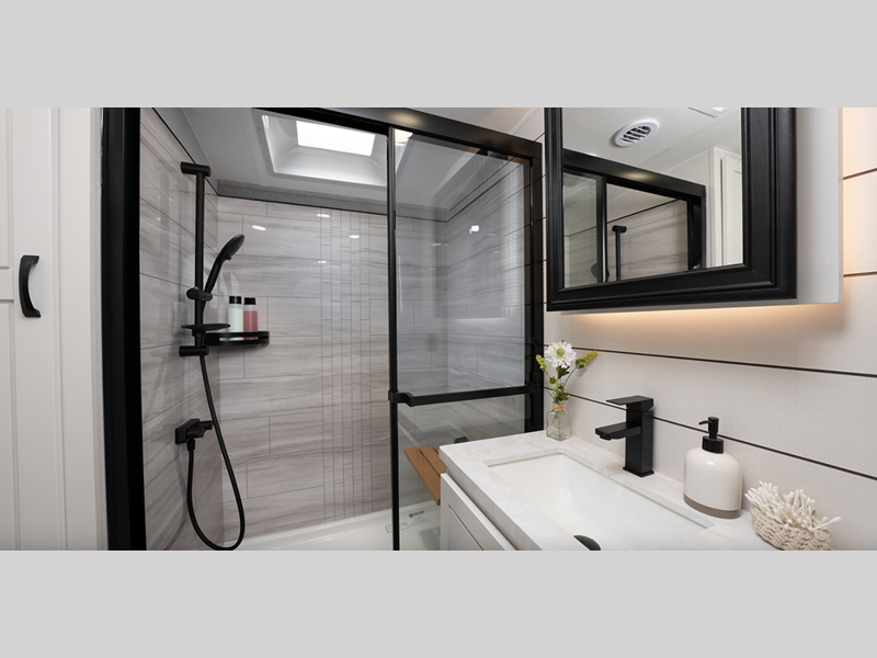 - Stronghold VBL™ aluminum framed and vacuum bond laminated gelcoated fiberglass exterior walls (including rear wall and slide room end walls)