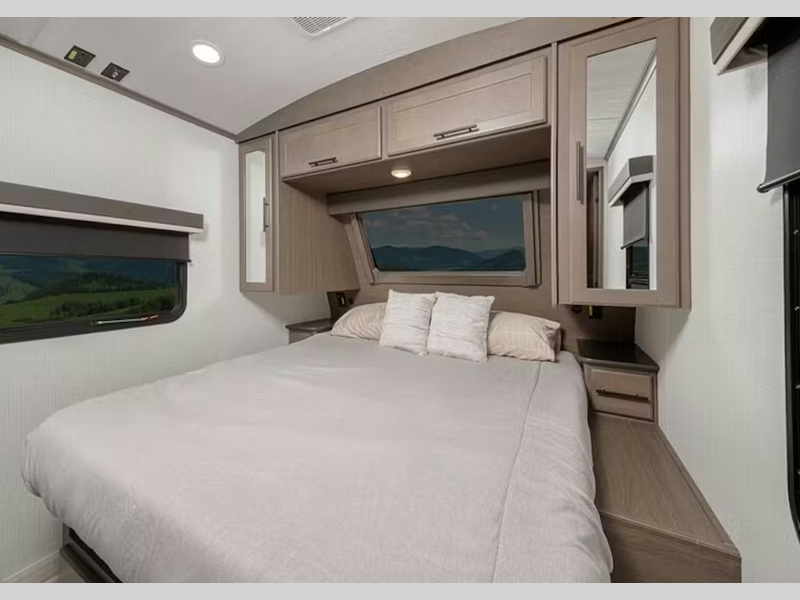 Sleeps 5 Slides 2 Length 34 ft 9 in Ext Height 11 ft 5 in Interior Color Driftwood Hitch Weight 955 lbs Dry Weight 7715 lbs Cargo Capacity 1785 lbs Fresh Water Capacity 54 gals Grey Water Capacity 60 gals Black Water Capacity 30 gals Tire Size ST225/75R15E Furnace BTU 30000 btu Available Beds Queen Refrigerator Type 12V Refrigerator Size 10.4 cu ft Cooktop Burners 3 Number of Awnings 1 LP Tank Capacity 20 lbs Water Heater Type Girard Tankless On Demand AC BTU 15000 btu TV Info LR LED HDTV Awning Info 19' Electric with Gas Strut Arm Axle Count 2 Number of LP Tanks 2 Shower Type Radius Electrical Service 50 amp Similar Floorplans