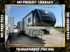 Sleeps 4 Slides 5 Length 42 ft 4 in Ext Height 13 ft 5 in Interior Color Oakmont, Woodcliff Exterior Color Volcano, Cobalt, Sterling, Glacier Full-Body Paint Choices Hitch Weight 2975 lbs Dry Weight 15063 lbs Cargo Capacity 2937 lbs Fresh Water Capacity 70 gals Grey Water Capacity 88 gals Black Water Capacity 88 gals Tire Size ST235/80R16G Furnace BTU 35000 btu Available Beds King Refrigerator Type Residential w/Ice Maker Refrigerator Size 18 cu ft Convection Cooking Yes Cooktop Burners 3 Shower Size 48" x 30" Number of Awnings 1 Axle Weight 7000 lbs LP Tank Capacity 30 lbs. Water Heater Capacity 16 gal Water Heater Type Gas/Electric Quick Recovery AC BTU 45000 btu TV Info LR 50" Smart TV, BR 32" LCD TV Awning Info 19' Electric with LED Lights Axle Count 2 Washer/Dryer Available Yes Number of LP Tanks 2 Shower Type Standard Electrical Service 50 amp Similar Floorplans